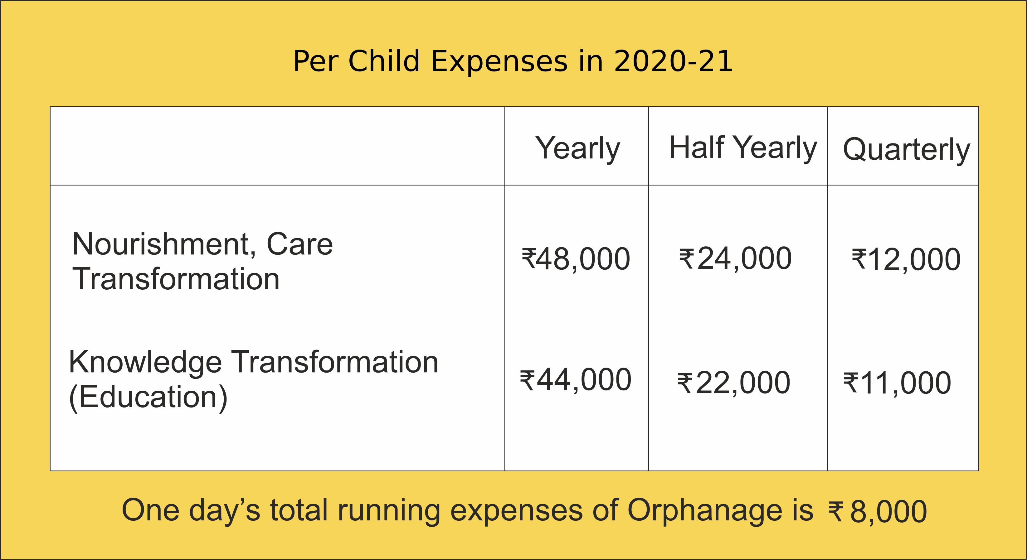 - Fees for 16 Kids from Class 1 to 9 standards is ₹ 3,87,500/-